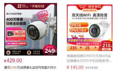 其實(shí)不論哪個(gè)購物平臺(tái),只要打開頁面隨便一搜“高清監(jiān)控?cái)z像頭”,自營店、官方旗艦店、代理商、專賣店,跳轉(zhuǎn)出來的店鋪頁面五花八門,門路繁多;以螢石C3W為例,目前做為國內(nèi)主要的家用高清監(jiān)控?cái)z像頭型號(hào)之一,在某寶購物平臺(tái)的銷量一直非常好,但價(jià)格也從官方旗艦店的400多到專賣店的100多。
