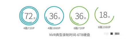 4.分辨率:對于監(jiān)控攝像頭來說,清晰度很關(guān)鍵。攝像機的分辨率越大、傳感器像素越高,拍出來的圖像就越清晰。但它所占用的帶寬和內(nèi)存空間也會更大,同樣大小的硬盤所能錄下的時間也就越短。以一臺6T的NVR為例: